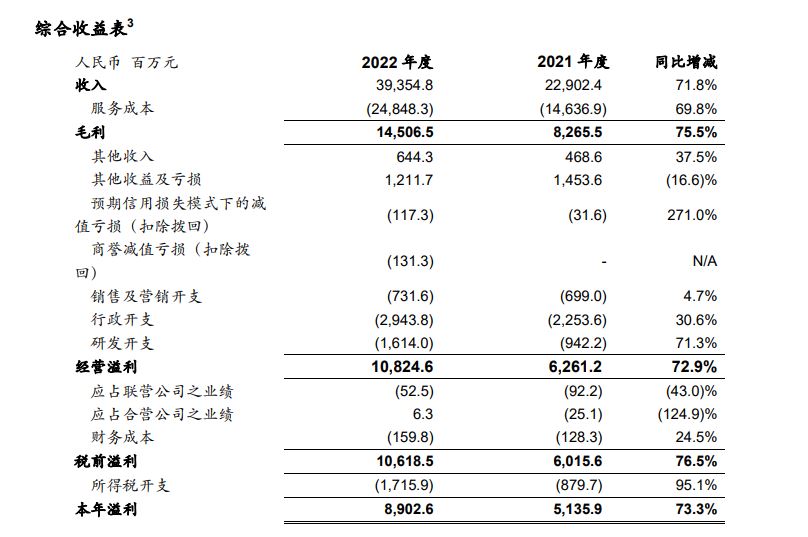 ●归属于上市公司股东的净利润88.14亿元,同比增长72.9%。