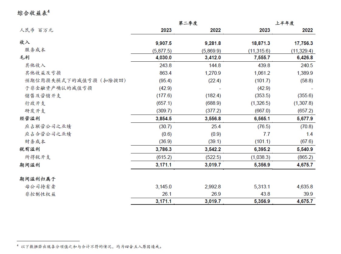 2023年半年度财务亮点