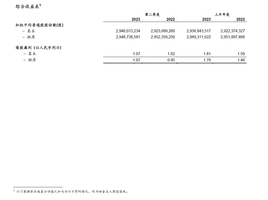 [1] 2022年1-6月和2023年1-6月,公司稀释加权平均普通股股份数分别为2,951,897,466股和2,949,311,622股。